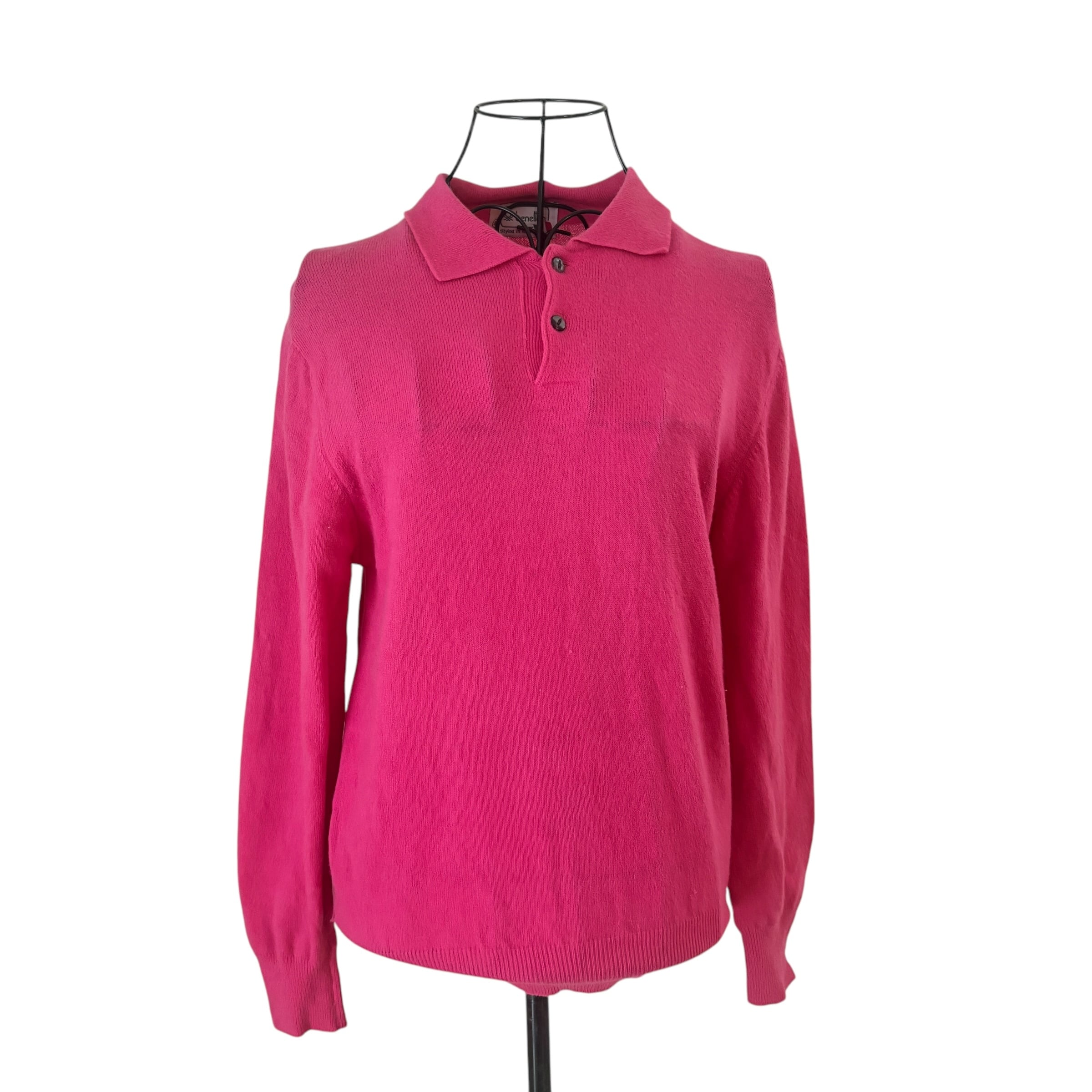 ⚫︎80sタグのベネトンニットシャツです。肌触りもよくパンチの効いたピンク色で可愛アイテムです。