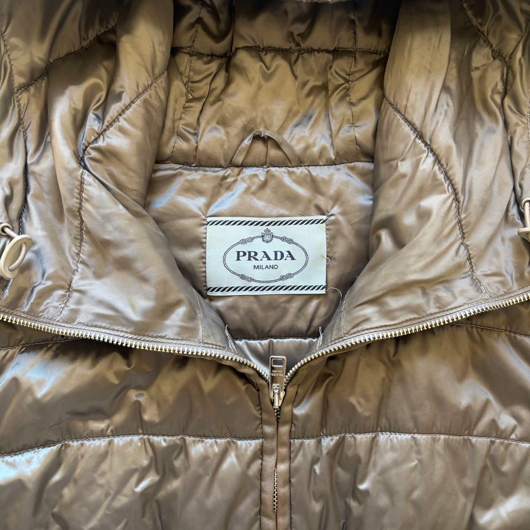 PRADA ウエストシャーリング三角プレート中綿ナイロンコート プラダ ロゴプレート